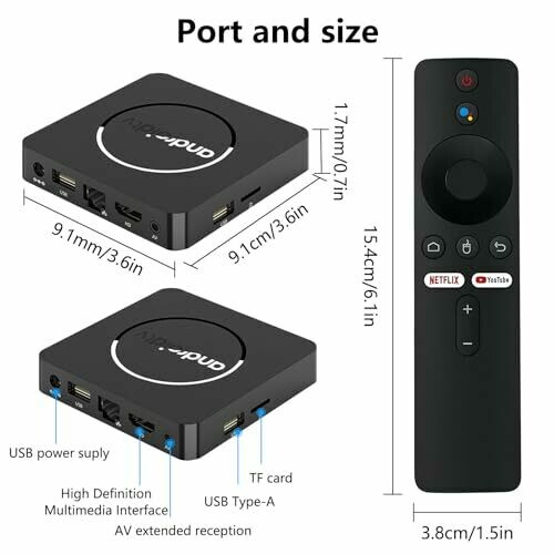 • Easy to Use & In the Box: Android TV Box 13.0 is the easiest way to turn your non-smart TV into a smart TV. Just plug and play. The TV box comes with a remote control, an HDMI cable, a user manual.
