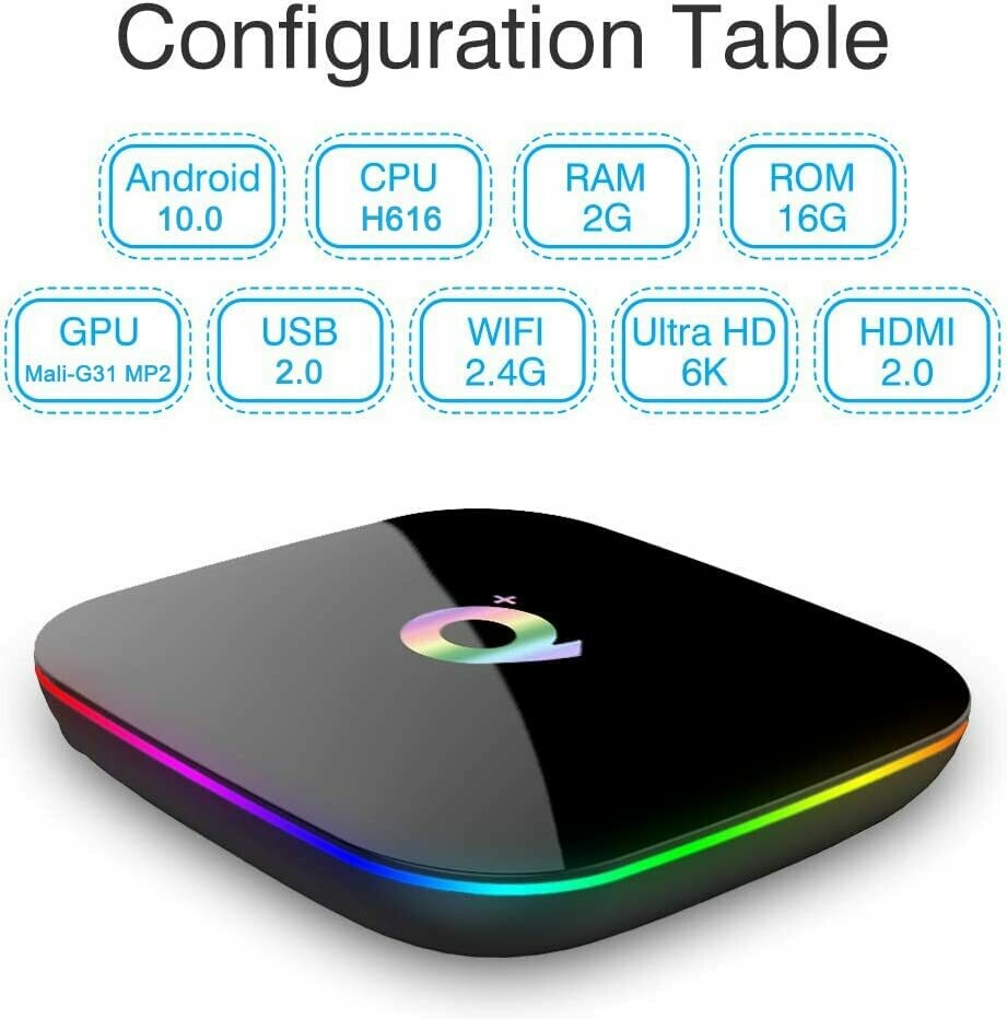 Q Plus Android 10.0 Tv Box 2gb Ram 16gb H616 Quad-core 2.4ghz Wifi 6k Hd Dlna 3d Smart Tv Box