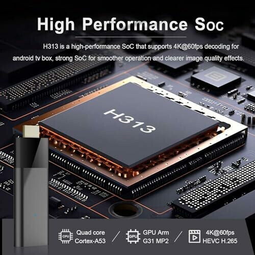 Powerful performance, smooth operation: Equipped with H313 quad-core -A53 processor, up to 1.5GHz, built-in Mali-G31 MP2 GPU, supports hardware 3D graphics acceleration, easily copes with the needs of high-definition video playback, games, etc. Rich functions, multi-faceted applications: Runs on the Android TV 10.0, compatible with a large number of applications and games, meeting your various entertainment needs. Supports 2.4G/5G dual-band WiFi, stable network connection, supports Bluetooth 5.2, can connect peripherals. High-definition picture quality, delicate and realistic: Supports 4K@60fps high-definition video decoding, equipped with HDR technology, presents delicate and realistic picture quality effects, allowing you to enjoy cinema-level viewing experience. Due to different batches, the appearance, color and printing of the product may be different, which does not affect use.