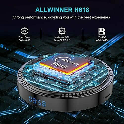 - Chipset: H618 Quadruple 64bit Cortex-A55 @ 1.8GHz