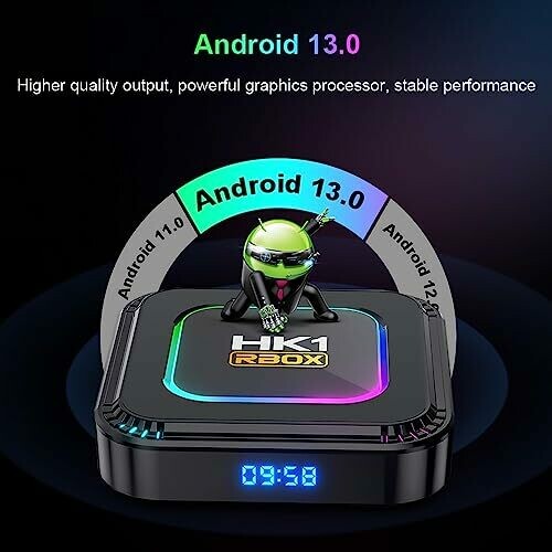 - Android 13.0 System: This smart TV box is equipped with Android 13.0 operating system and Mali-450 GPU is far ahead in image processing. Smooth operation and fast response are guaranteed. It also mentions providing enough space to install apps, games, etc. OTA Tec, automatically downloads update packages and updates automatically through the network.