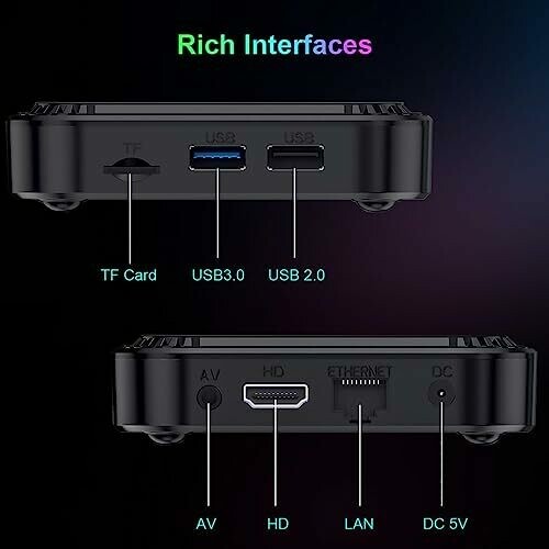- Excellent Heat Dissipation and RGB Lights: Built-in thermal trigger protector, excellent heat dissipation design to prevent chip damage and extend the life of your TV box. According to your preference, you can change the color, effect and turn on or off the RGB lights in "Settings-More Settings-LED". Provide you the best atmosphere experience while watching movies at night.