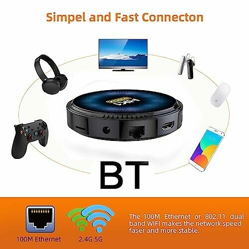 • 2.4G 5.8G Dual Band Wi-Fi: Android TV is equipped with IEEE 802.11 a/b/g/n/ac 2.4G / 5G WIFI and 100M Ethernet to ensure the most robust and stable network environment. This ensures stable and smooth loading of movies, pictures and games in the box without buffering and without waiting for a magnificent moment.
