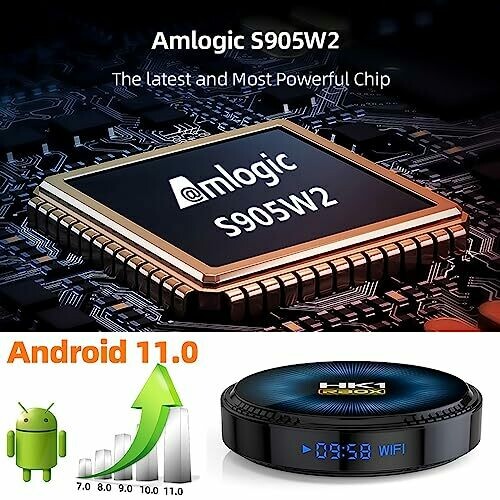 • Android 11.0 System: This smart TV box is equipped with Android 11.0 operating system and Mali-G31 GPU is far ahead in image processing. Smooth operation and fast response are guaranteed. It also mentions providing enough space to install apps, games, etc. OTA Tec, automatically downloads update packages and updates automatically through the network.