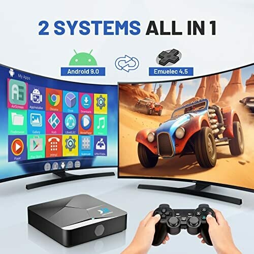 - 2 Systems in 1: Equipped with the latest EmuELEC 4.5 game system and Android TV system. You can use it to watch online TV and play video games. The remote controller can switch between the TV system and the game system.
