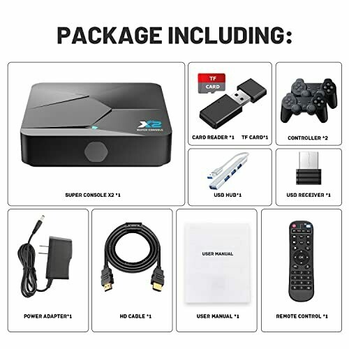 - Rich Classic Games: Super Console X2 game console includes 100000+ games, compatible with 60+ emulators like PSP, PS1, DC, SNES, etc. Please contact us for the game list.