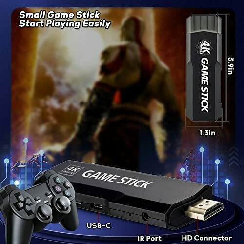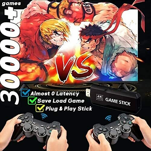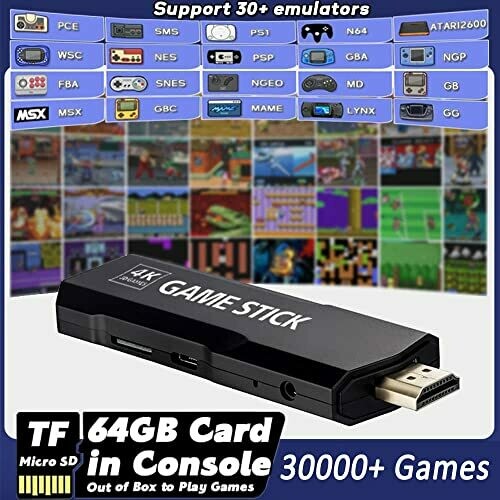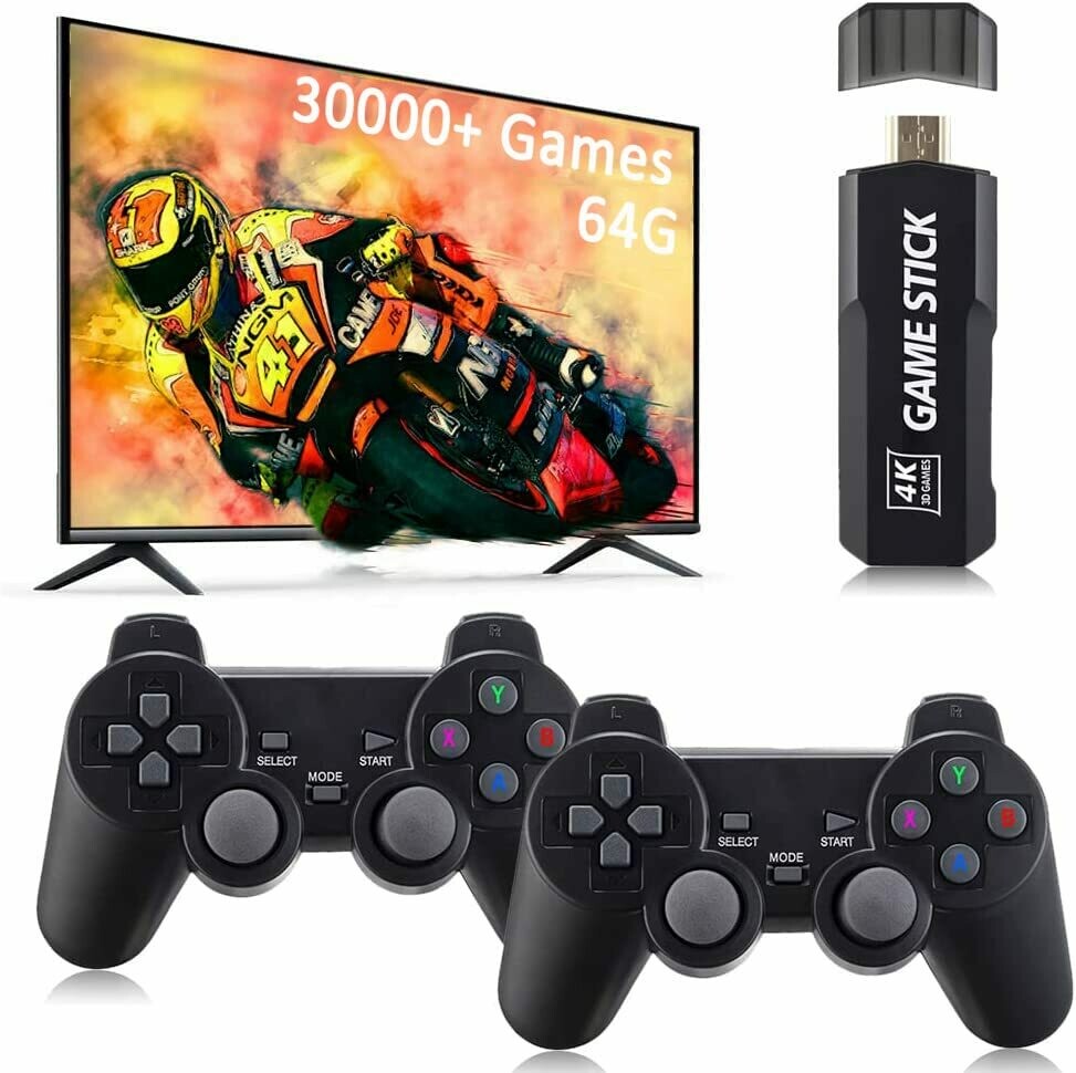 Zoney Classic Retro Game Console, 3d Game Stick with Dual 2.4g Wireless Controllers, Built-in 64gb Tf Card 30000+ Classic Games Plug & Play Video Game Compatible with 4k Hdmi Tv Projector